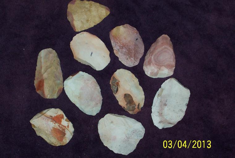 | This special is for 10 Burlington preforms. Burlington comes mostly from Missouri and is a high quality stone long favored by flintknappers. The heat treatment really brings out the coloration and makes it nice and glassy. Each box may include several varieties including Crescent, High Ridge, Bowling Green, Creek Burlington, and some others. The average length in each box is 35 inches. The picture is a average representation of what each box contains. I have a limited amount of these special boxes while they last they are $40 per box shipping included. |