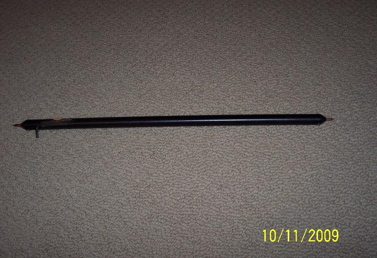 | My Ishi stick lite is constructed from an 18 inch long piece of 5/8 inch diameter delrin. It features a different size copper nail in each end, doubling the versatility of the tool. Many like this smaller diameter for it's extra flex. Refill nails are available from me at all times. Be sure to order my new companion pressure flaker to match this Ishi stick. Click HERE to go to the pressure flaker page and view it! |