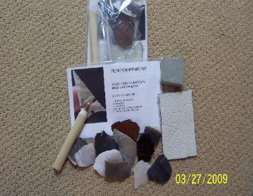 | I offer 3 separate kits for my customers. They fill every level of need from a budding novice thru experienced knappers. They are Basic Beginner's Kit, Intermediate Kit, and Master Kit. They all three include all the necessary tools for that level, plus one thing missing in most kits on the market. FLINT. |