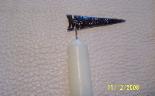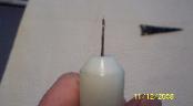 | WHILE DEVELOPING THIS TOOL IT BECAME APPARENT OF THE DIFFICULTY IN DESIGNING A TOOL THAT WOULD TIGHTLY HOLD THE ODD SHAPE OF A HORSESHOE NAIL AND STILL HAVE THE VERSATILITY OF AN EASILY INTERCHANGEABLE TIP. WHILE HARDLY VISIBLE THE FRONT OF THE TOOL IS AN INSERT THAT IS A LIGHT PRESS FIT. IT CAN BE PULLED OUT, THE WORN OUT NAIL TAPPED OUT, A NEW ONE INSERTED AND THE ASSEMBLY REINSERTED IN THE HANDLE. THE SLOT THAT HOLDS THE NAIL IS FORM FIT AND HOLDS THE NAIL PERFECTLY. THIS IS A QUALITY TOOL THAT WILL LAST INDEFINITELY. ANYONE WHO HAS TRIED TO MAKE EXCEPTIONAL ISHI POINTS OR CAHOKIAS WILL UNDERSTAND THE PRICELESS NATURE OF THIS TOOL. |