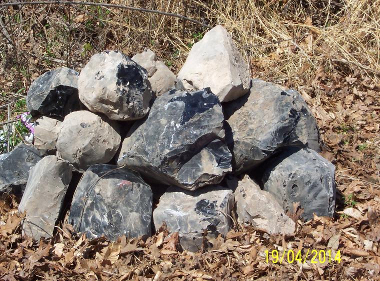 | In an effort to serve my loyal customers, I'm making substantial investments to insure adequate stocks. Here is a picture of one of my lines of obsidian piles. There is roughly 20,000 pounds of obsidian varieties and Dacite in these piles. |
